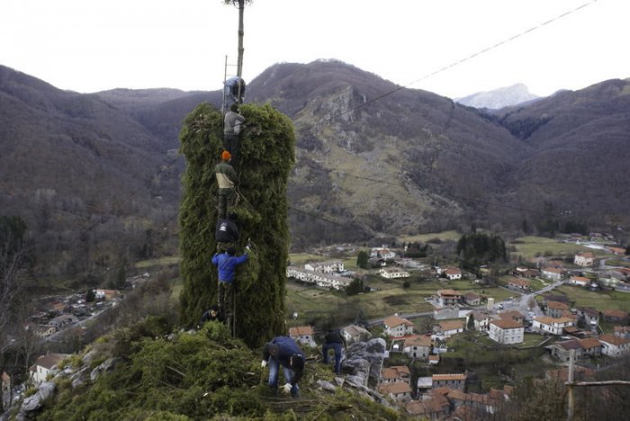 La vigilia di Natale nel Comune di Minucciano, in particolare a Gorfigliano, c’è la tradizione di dare fuoco ai “Natalecci”, costruzioni a base di rami di ginepro alte oltre 10 metri e larghe tre, quattro metri.. Un gran lavoro di squadra che dura diversi giorni, una sfida fra rioni, un atto rituale. Qui siamo nel rione Culiceto di Gorfigliano.