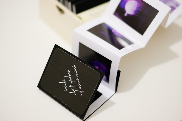 Già le parole di Silvia Ricci sono una dichiarazione di una fotografia del sogno, del frammento svincolato dal reale. E’ altro da sé, ma non diverso da sé, un altro universo, anche perché tutto si sviluppa graficamente nel piccolo formato, quasi tascabile, in una scatola delle meraviglie …come il “Favoloso mondo di Amelie”. (L.E.)